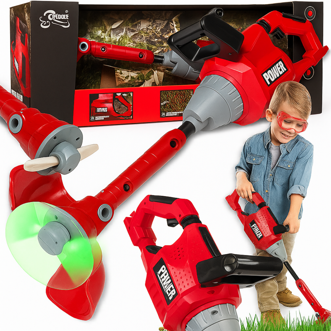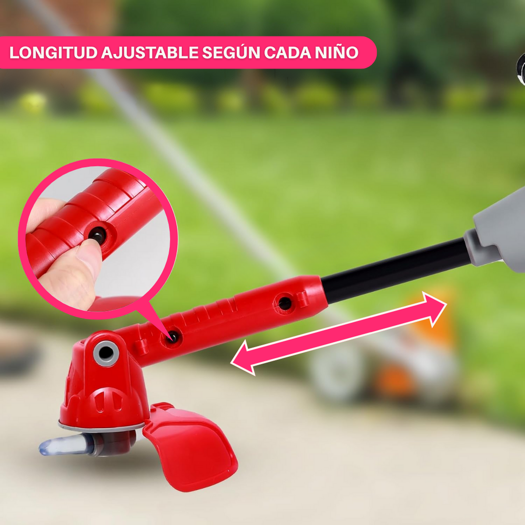 Muchos chicos quieren “ayudar” pero no tienen herramientas seguras. Esta bordeadora es ideal: no corta, no pincha, y parece de verdad. Basta con presionar un botón para que el cablecito gire acompañado de luces y sonido, como si estuviera recortando de verdad 🌿✨