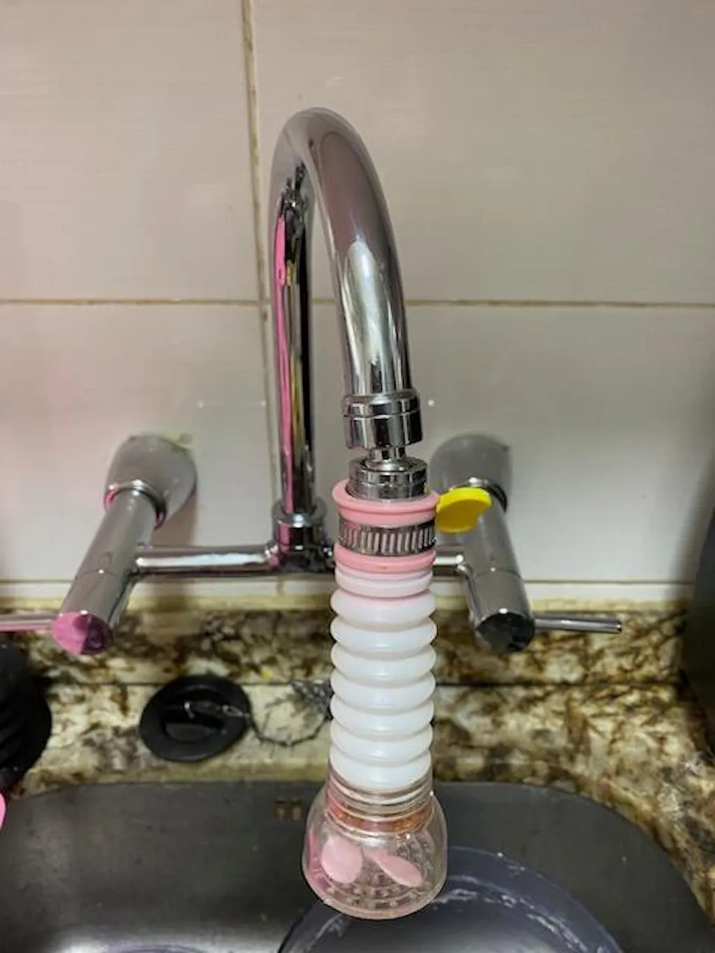 Cambié la grifería de la cocina y la nueva tiene un caño de menor diámetro, así que me quedé sin la extensión que usaba, buscando una nueva. Ésta me sirve perfecto porque se coloca del lado de afuera y se ajusta con la mariposa. No le pongo 5 estrellas porque me parece un tanto frágil, tengo dudas en su duración.