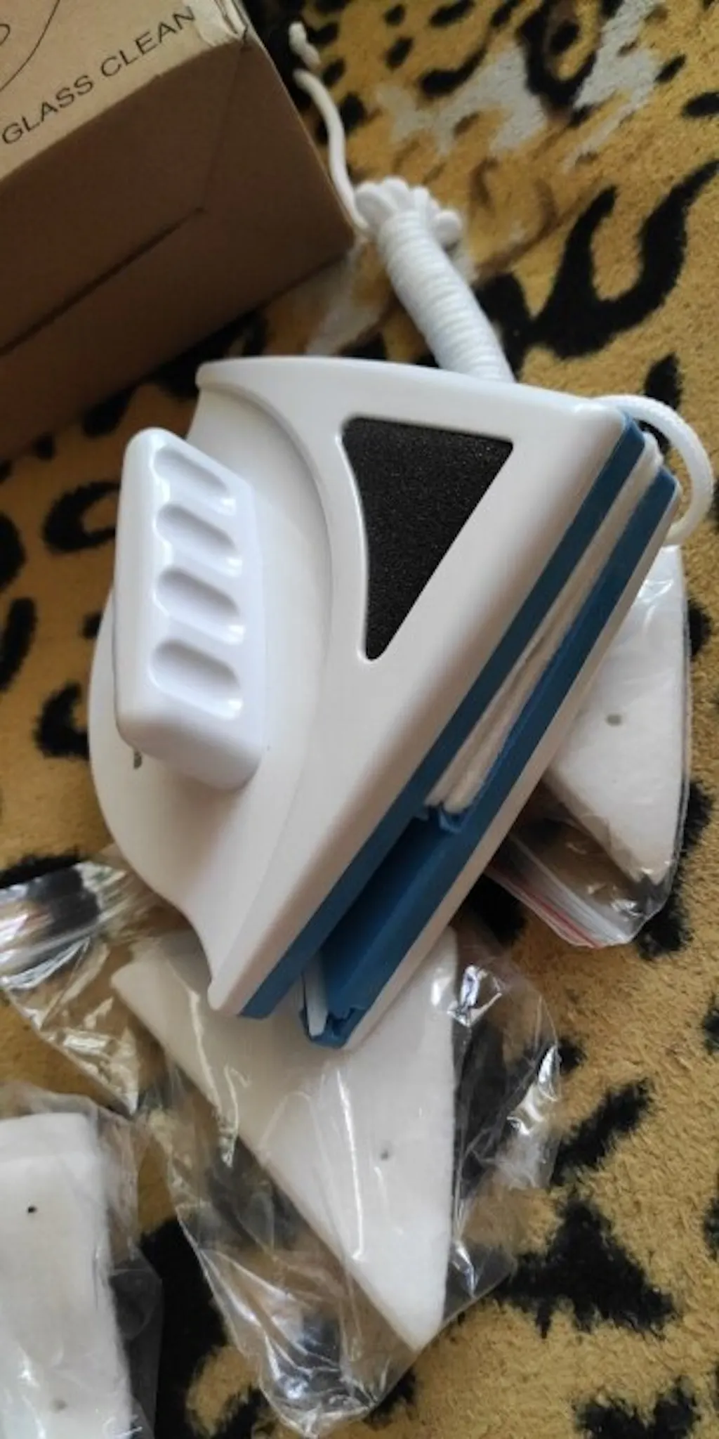 Su funcionamiento es espectacular, se asegura a través del vidrio con potentes imanes que lo hacen seguir el movimiento de tu mano por ambos lados de la ventana. Además incluye repuestos!