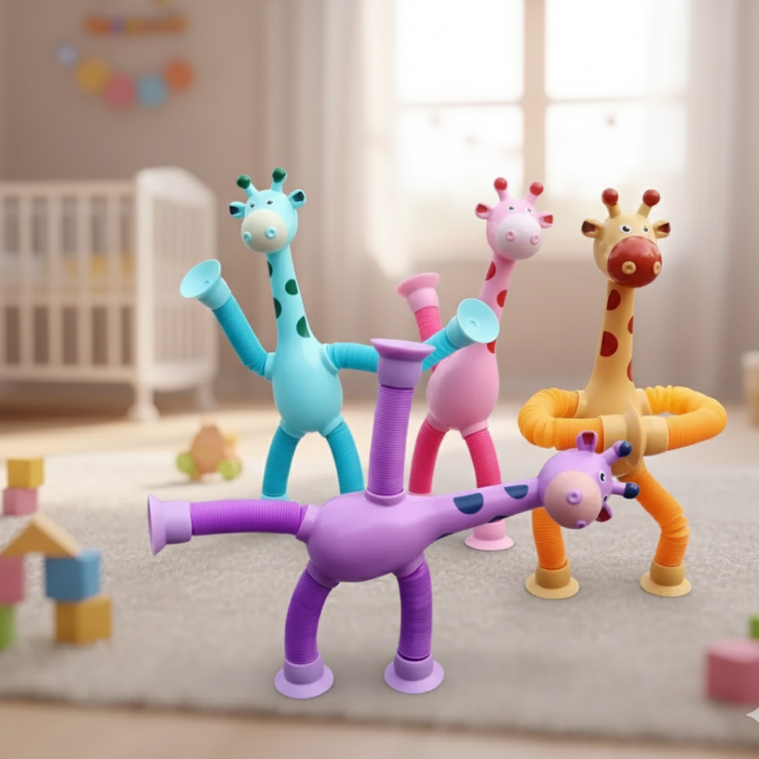 ¿Cansado de que los chicos se aburran rápido? 🙈 Estas jirafas no fallan: se estiran, se encogen, hacen ruiditos y se pegan en cualquier superficie lisa gracias a su ventosa ✨