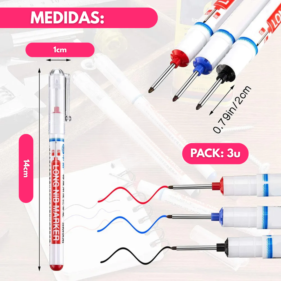 Juego de 3 Marcadores de Punta Larga Para Carpinteria
